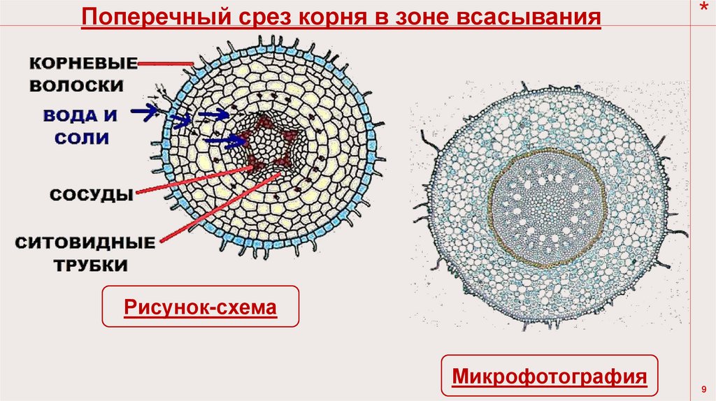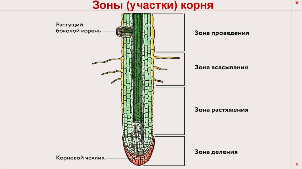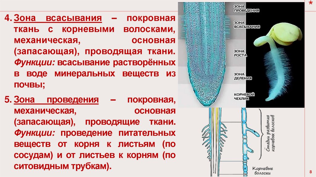 4. Зона всасывания – покровнаяткань с корневыми волосками,