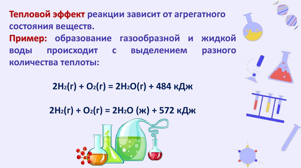 Тепловой эффект реакции зависит от агрегатногосостояния веществ.