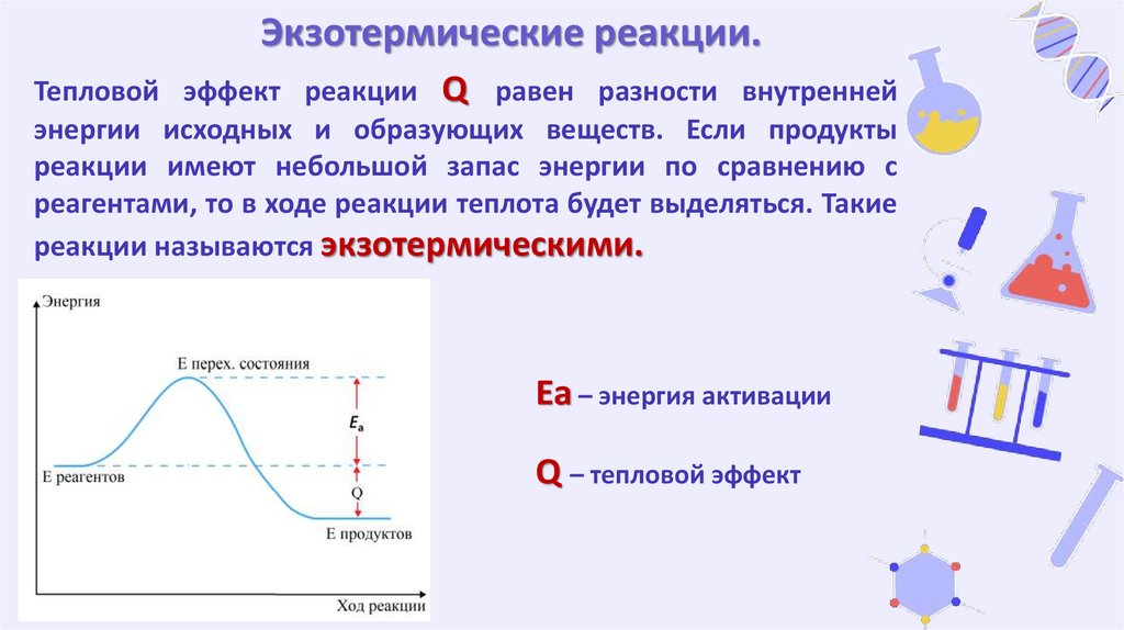 Экзотермические реакции.Тепловой эффект реакции Q равен разности внутренней