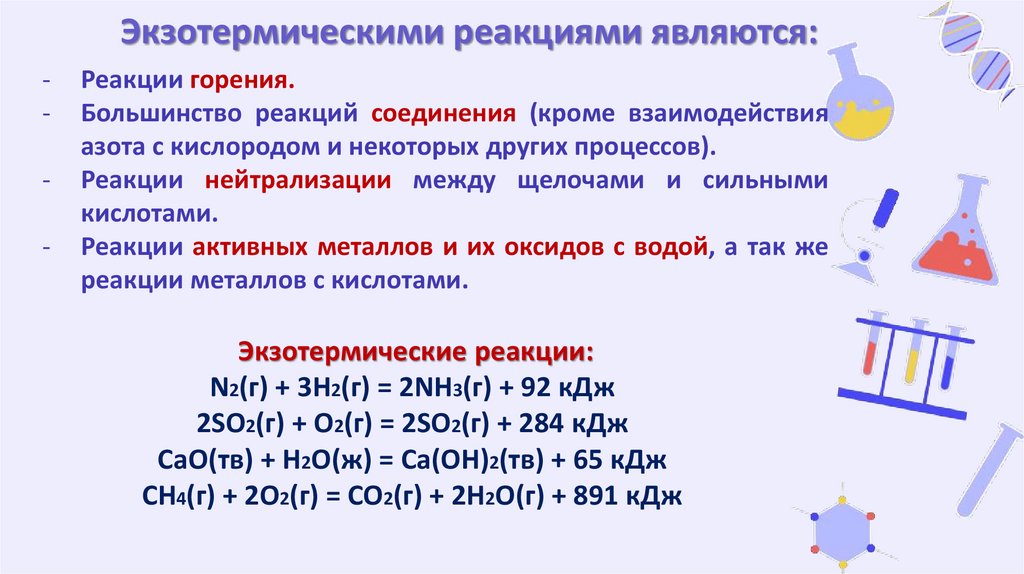 реагентами, то в ходе реакции теплота будет выделяться. Такие