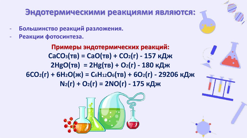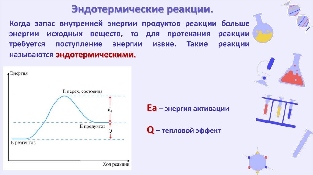Эндотермические реакции.Когда запас внутренней энергии продуктов реакции больше