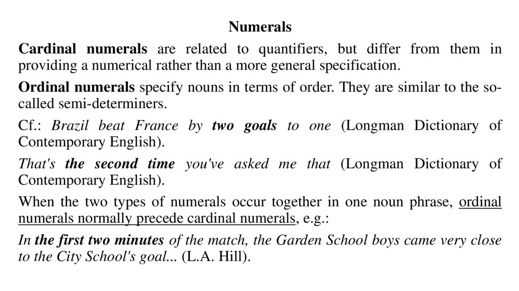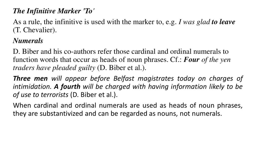 D. Biber and his co-authors refer those cardinal and ordinal numerals to