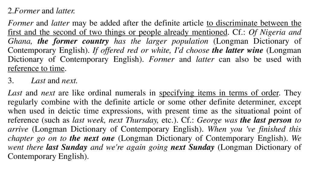 other, former, latter, last, and next; b) cardinal numerals and quantifying