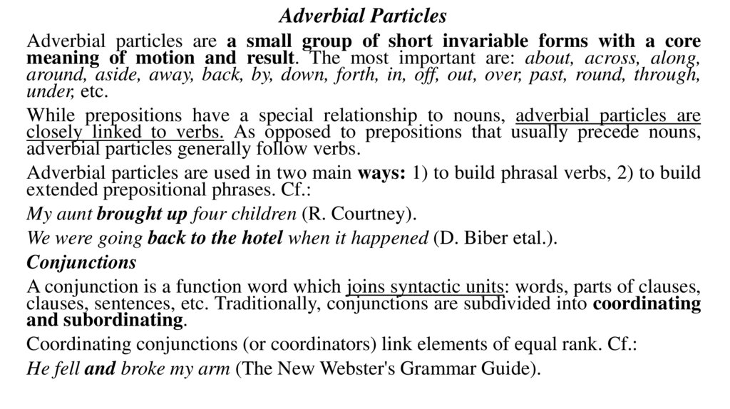 Adverbial ParticlesAdverbial particles are a small group of short invariable forms with a core