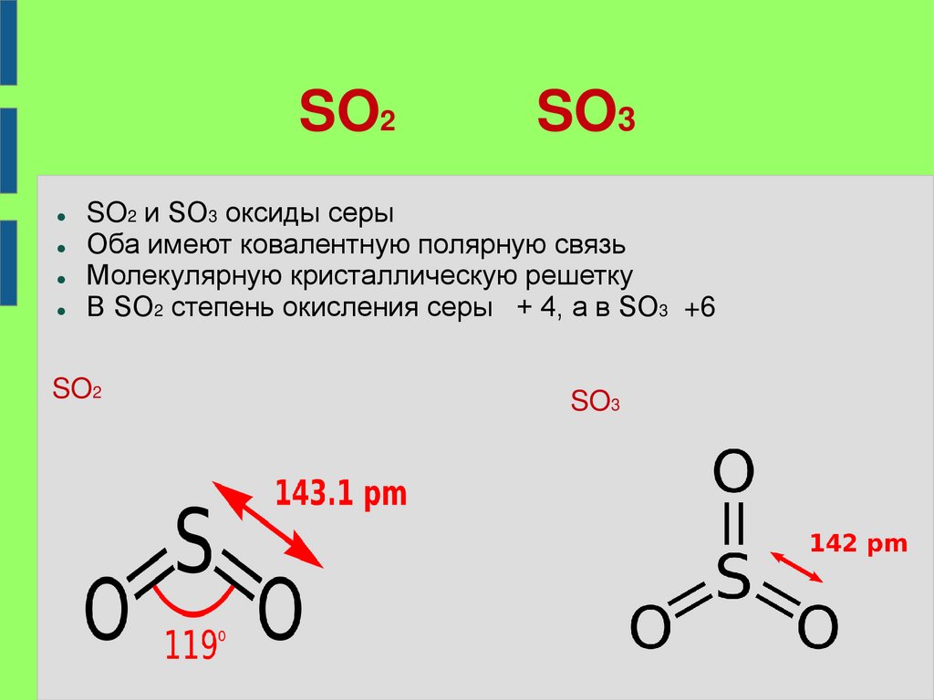 В SO2 степень окисления серы + 4, а в SO3 +6