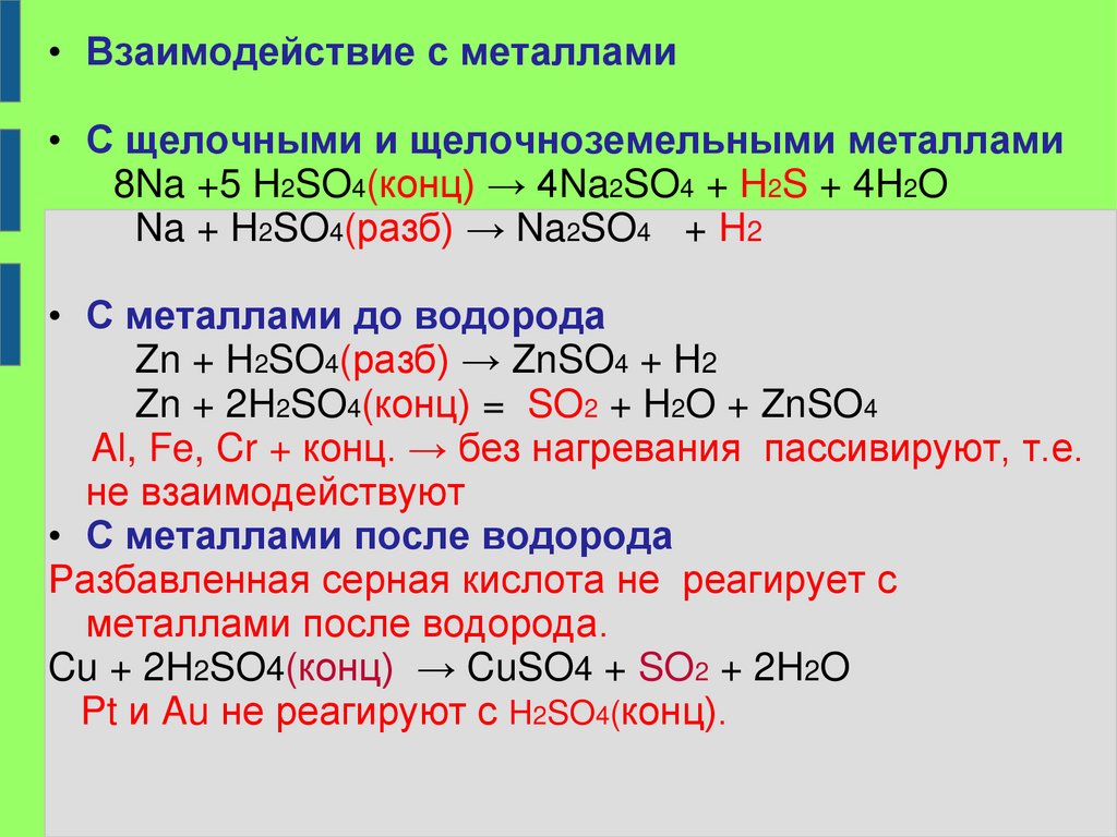 Zn + H2SO4(разб) → ZnSO4 + H2