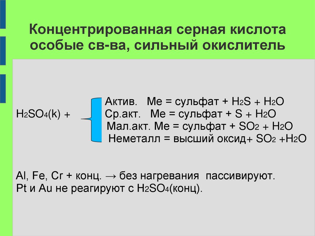 Концентрированная серная кислотаособые св-ва, сильный окислитель