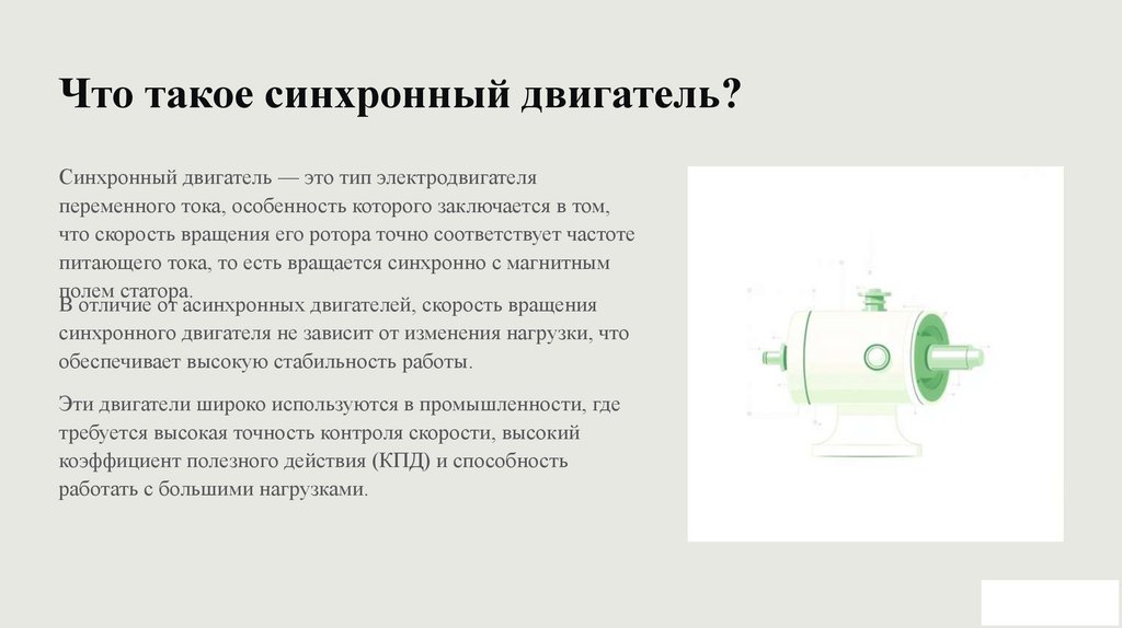 Что такое синхронный двигатель?Синхронный двигатель — это тип электродвигателя