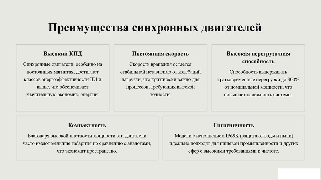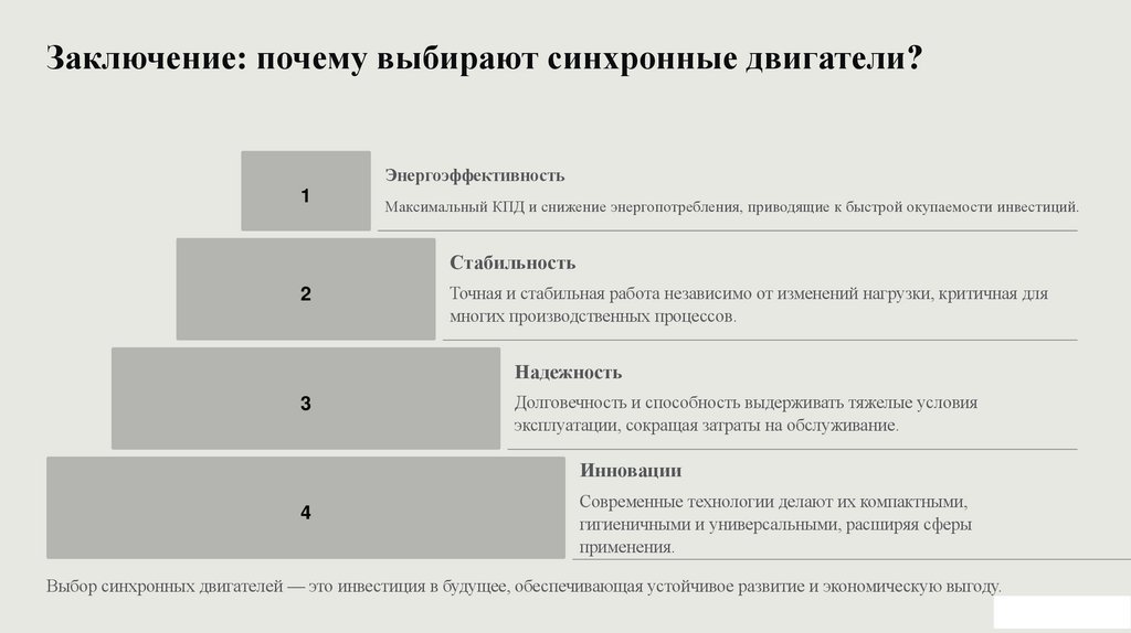 Заключение: почему выбирают синхронные двигатели?Энергоэффективность