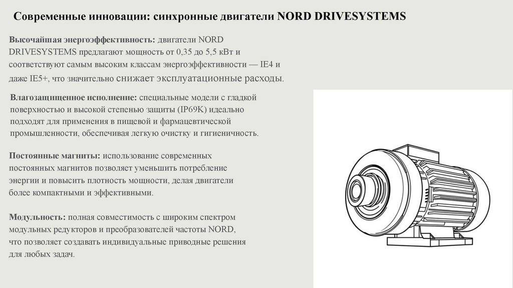 Современные инновации: синхронные двигатели NORD DRIVESYSTEMSВысочайшая энергоэффективность: двигатели NORD