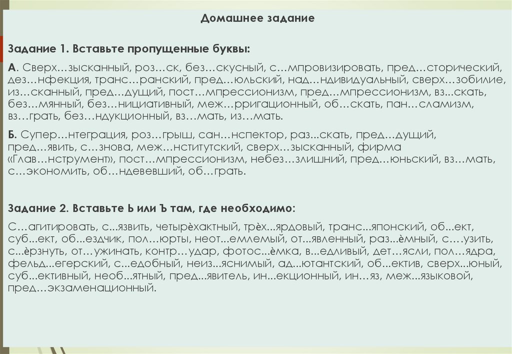 Домашнее заданиеЗадание 1. Вставьте пропущенные буквы: