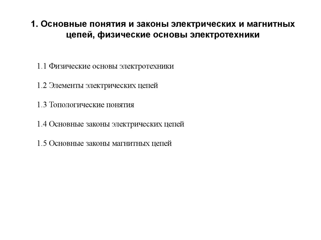 1.1 Физические основы электротехники1.2 Элементы электрических цепей