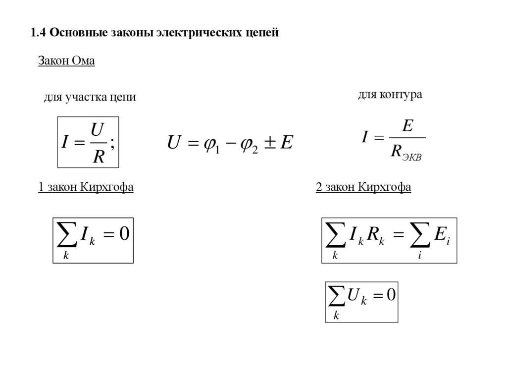 1.4 Основные законы электрических цепей