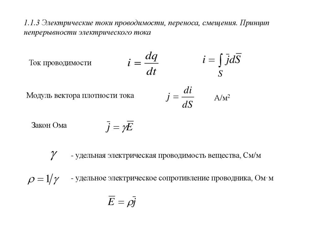 1.1.3 Электрические токи проводимости, переноса, смещения. Принципнепрерывности электрического тока
