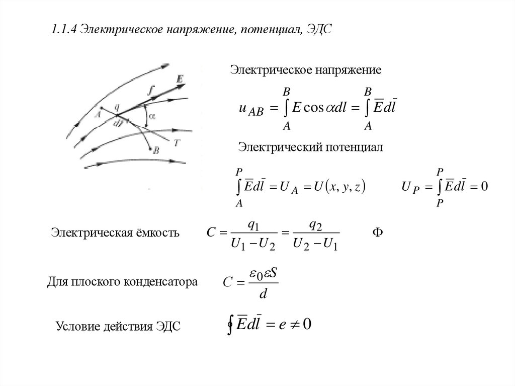 1.1.4 Электрическое напряжение, потенциал, ЭДСЭлектрическое напряжение