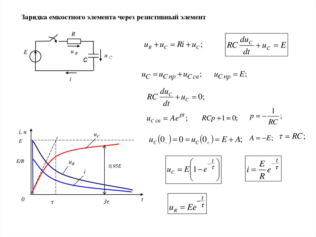 Зарядка емкостного элемента через резистивный элементR