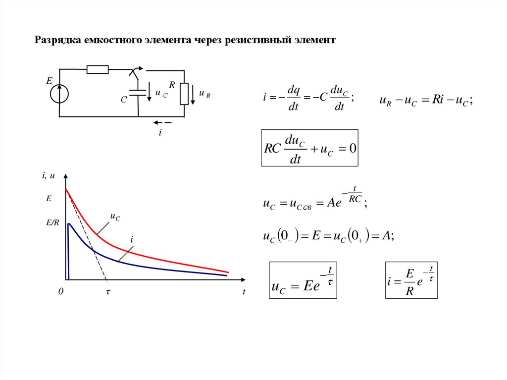 Разрядка емкостного элемента через резистивный элементE