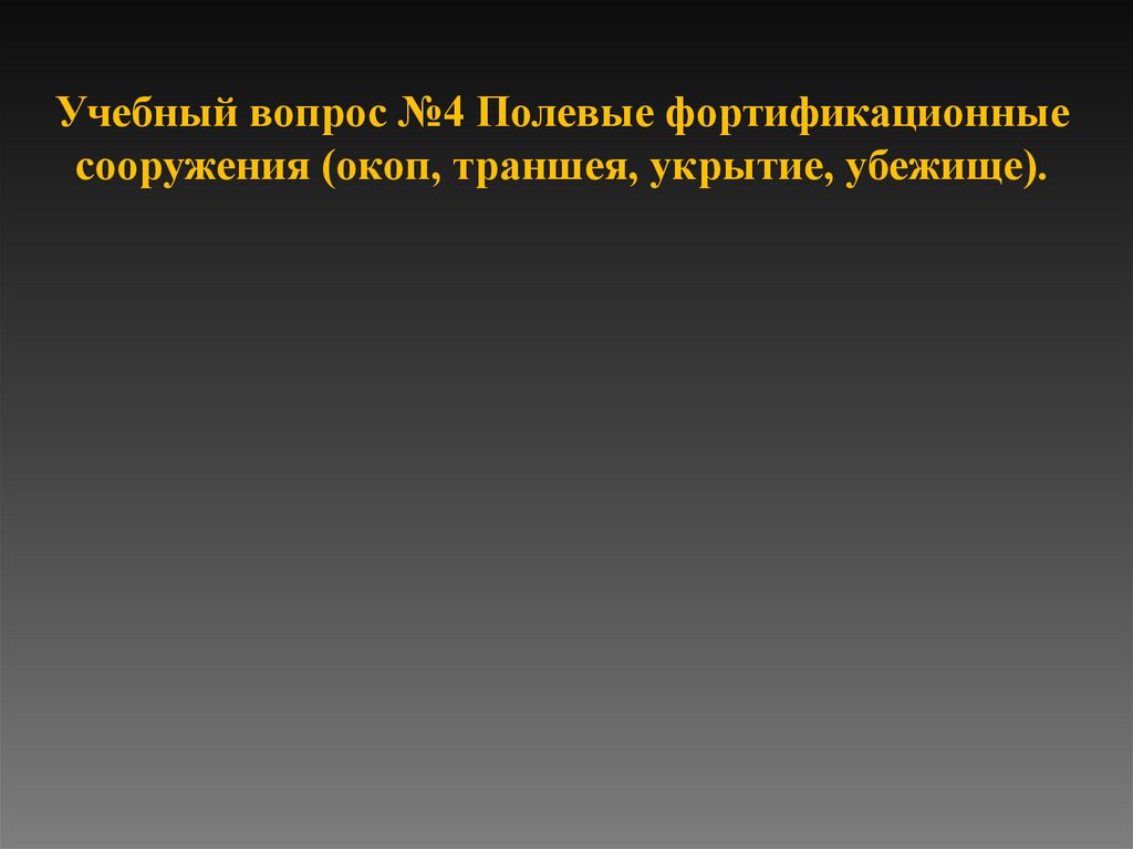 Учебный вопрос №4 Полевые фортификационныесооружения (окоп, траншея, укрытие, убежище).