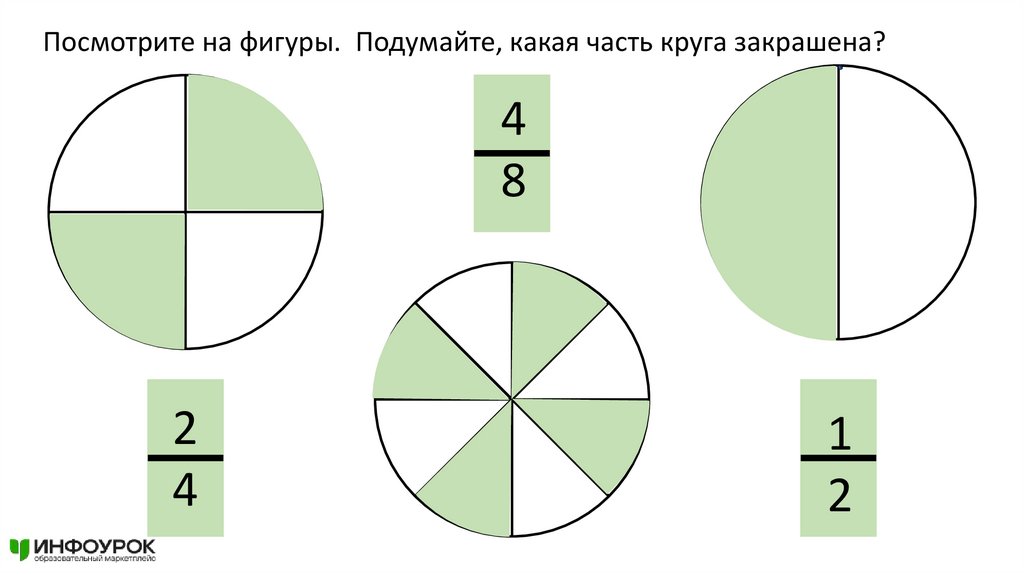 Посмотрите на фигуры. Подумайте, какая часть круга закрашена?4