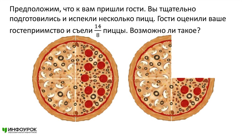 Предположим, что к вам пришли гости. Вы тщательноподготовились и испекли несколько пицц. Гости оценили ваше