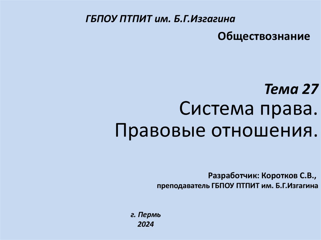 Система права. Правовые отношения