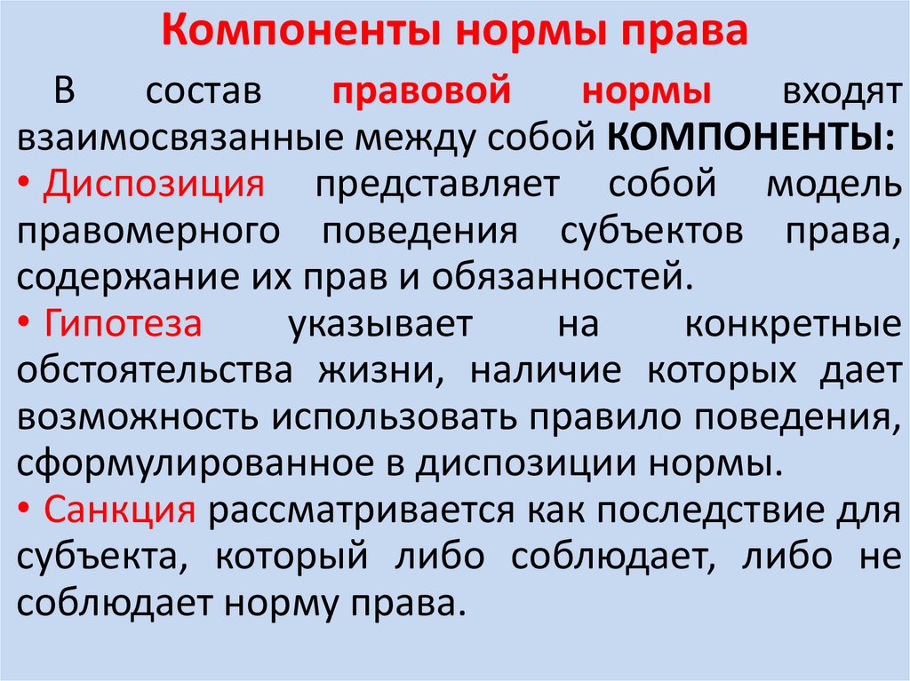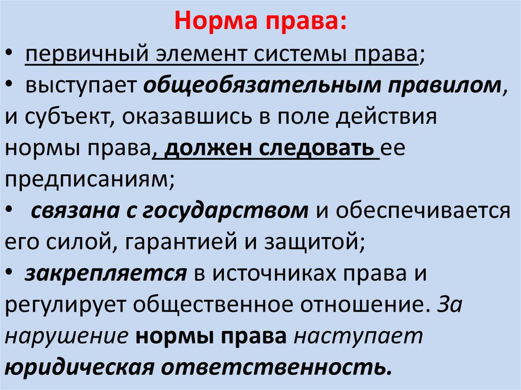 Норма права:• первичный элемент системы права;