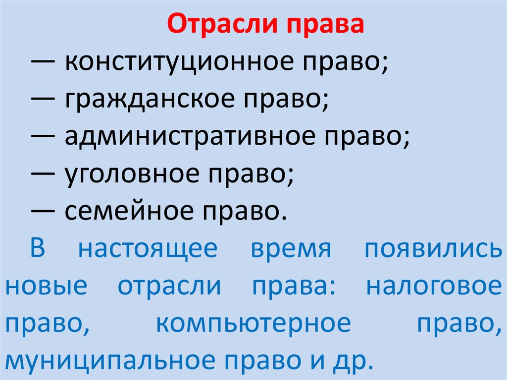 Учебные вопросы:1. Система права.