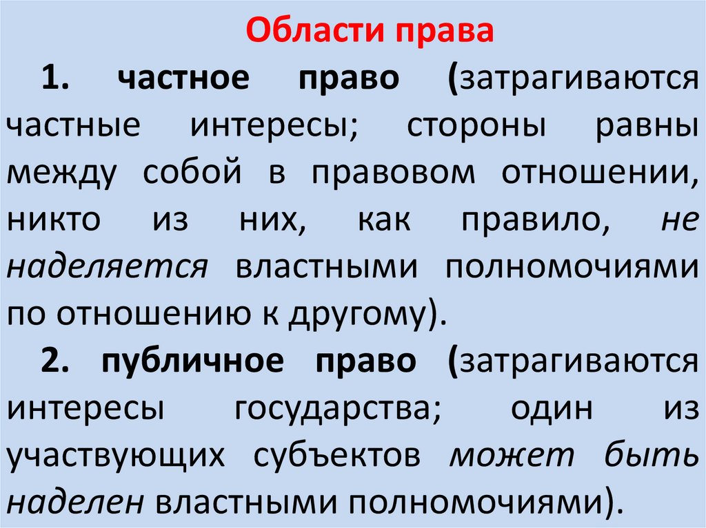 области: частное и публичное право.