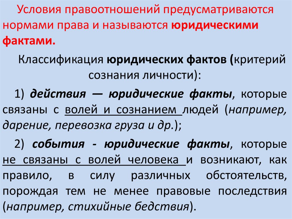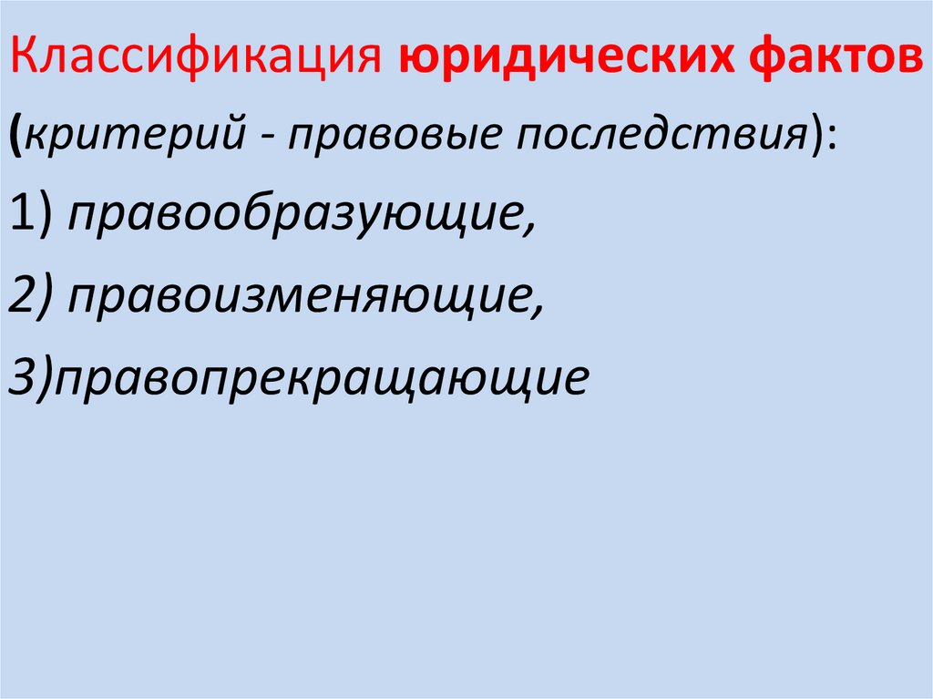 Классификация юридических фактов (критерий