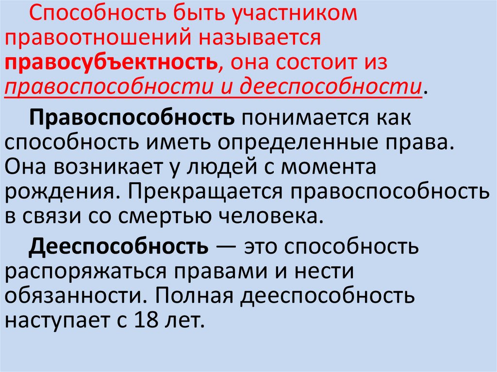 Способность быть участникомправоотношений называется