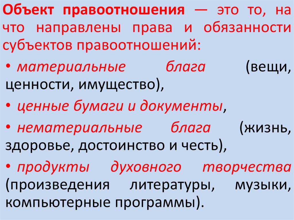 Объект правоотношения — это то, начто направлены права и обязанности