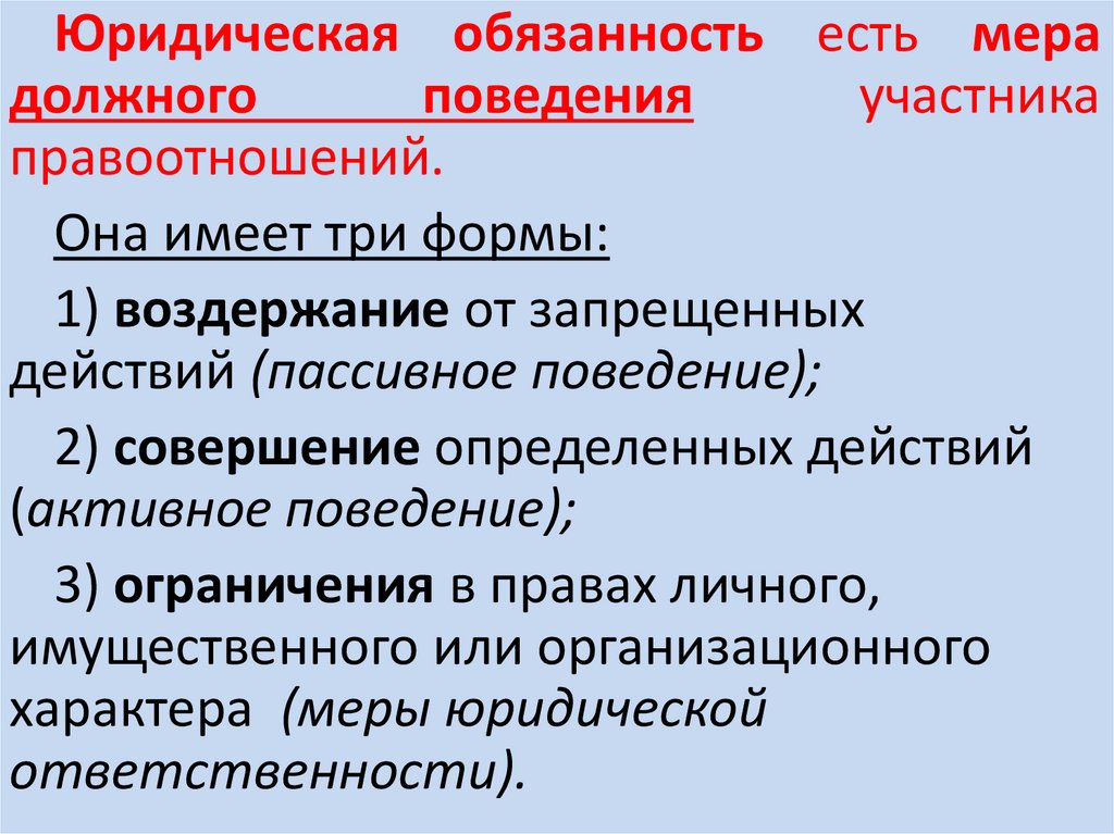 Юридическая обязанность есть мерадолжного