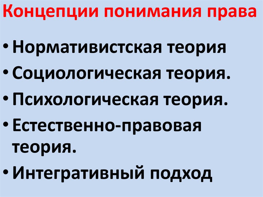 Концепции понимания права• Нормативистская теория