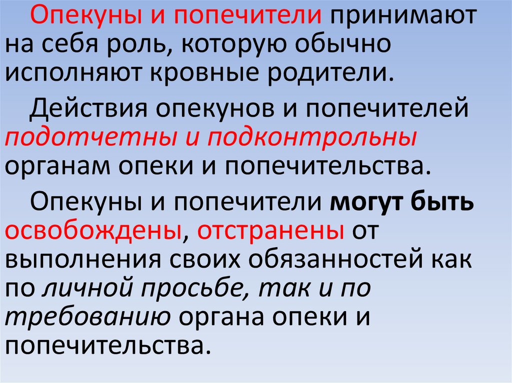 Опекуны и попечители принимаютна себя роль, которую обычно