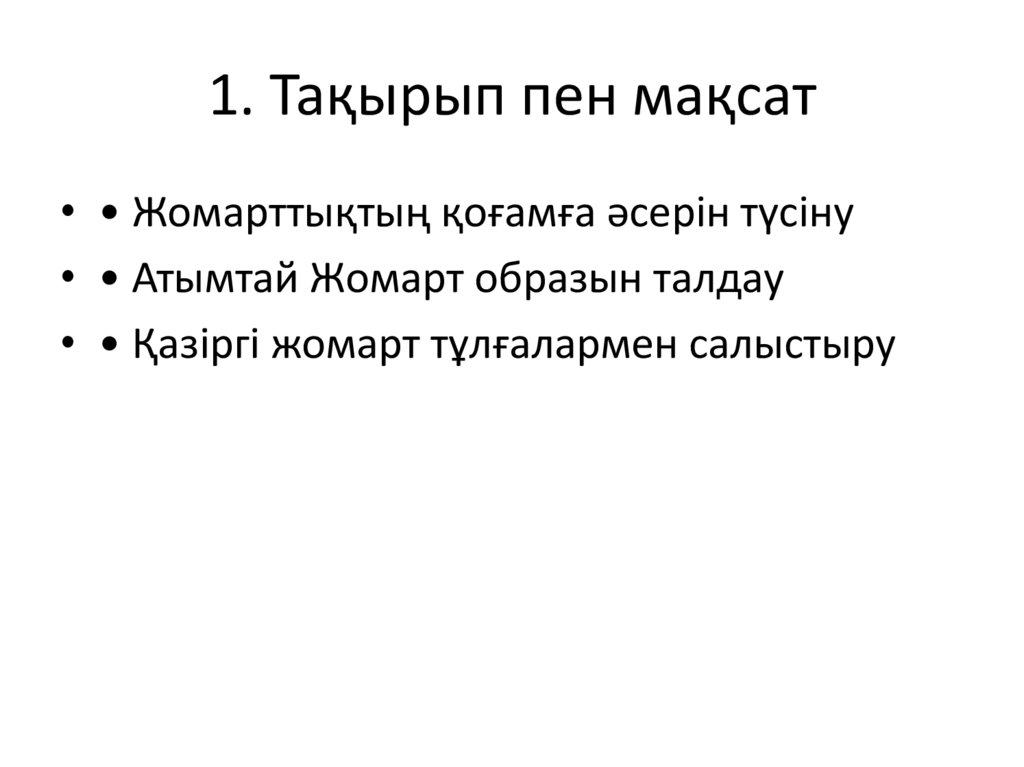 1. Тақырып пен мақсат• • Жомарттықтың қоғамға әсерін түсіну