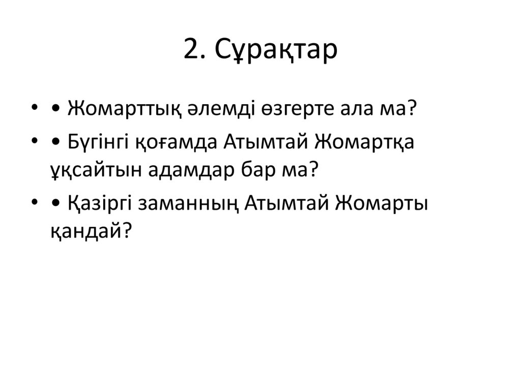 2. Сұрақтар• • Жомарттық әлемді өзгерте ала ма?