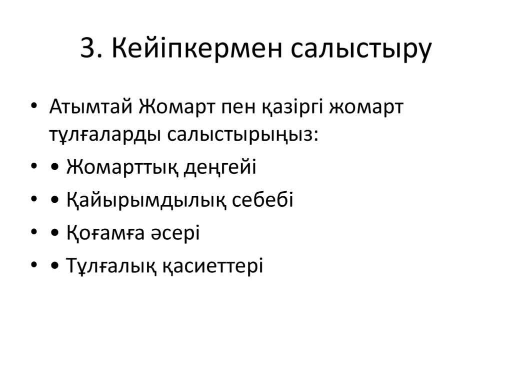 3. Кейіпкермен салыстыру• Атымтай Жомарт пен қазіргі жомарт