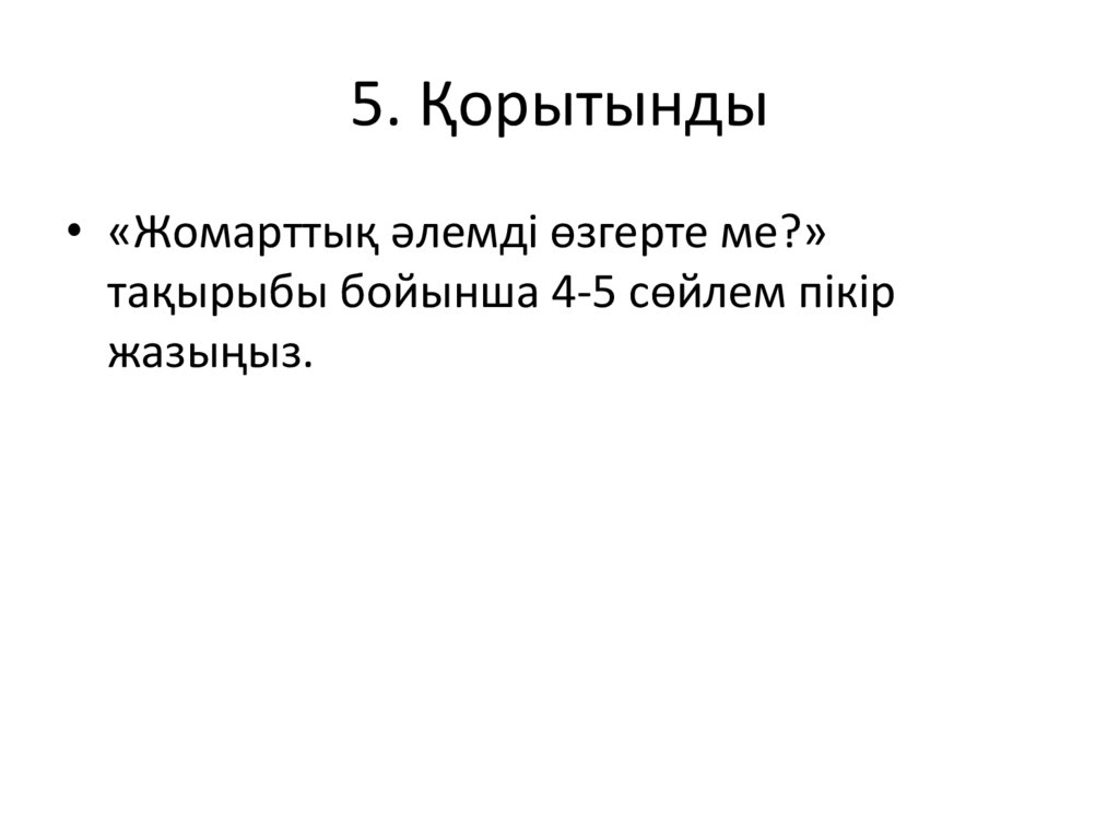 5. Қорытынды• «Жомарттық әлемді өзгерте ме?»