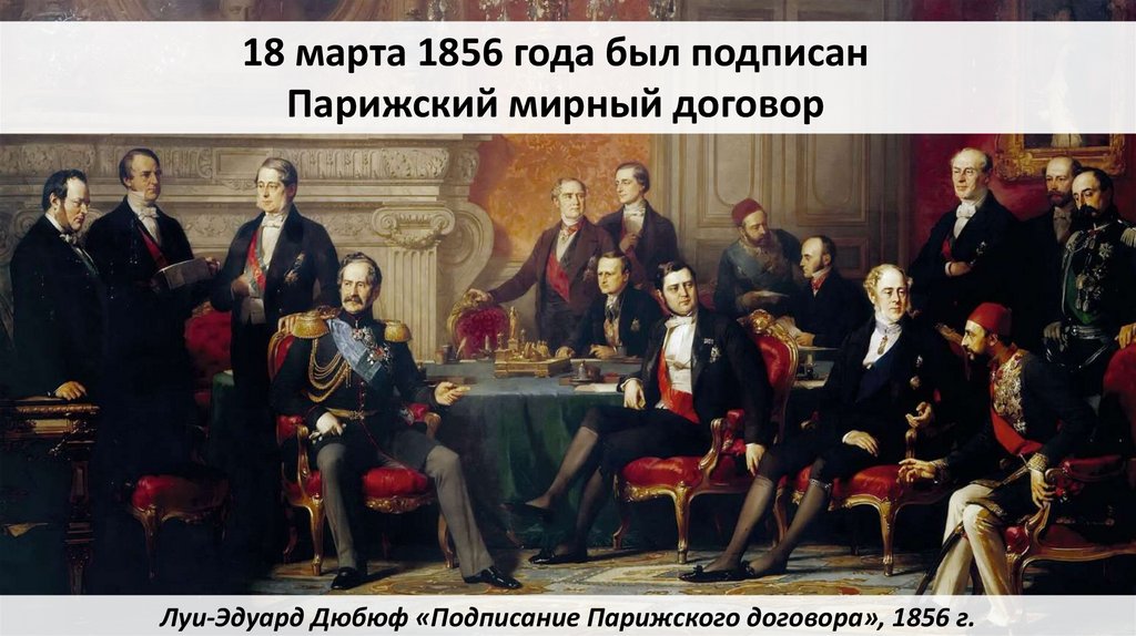 Луи-Эдуард Дюбюф «Подписание Парижского договора», 1856 г.