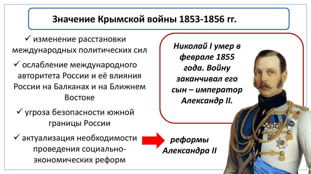 Значение Крымской войны 1853-1856 гг.изменение расстановки