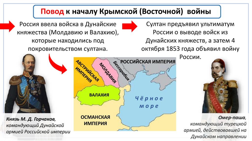Повод к началу Крымской (Восточной) войныРоссия ввела войска в Дунайские