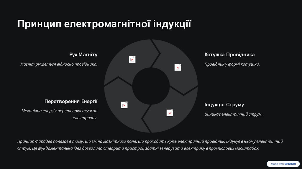 історії людства – принцип електромагнітної індукції. Це відкриття лягло в