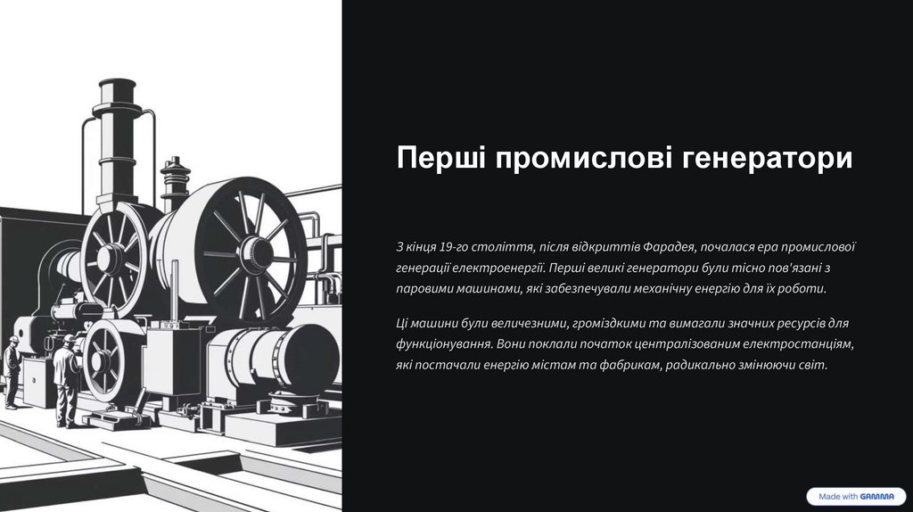 генерації електроенергії. Перші великі генератори були тісно пов'язані з