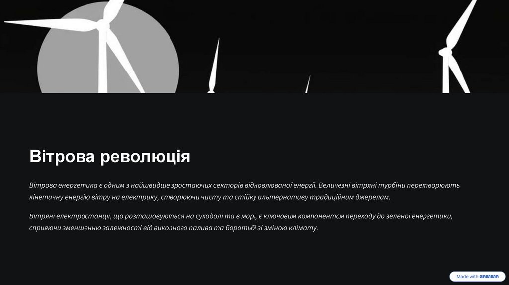 кінетичну енергію вітру на електрику, створюючи чисту та стійку альтернативу традиційним джерелам.