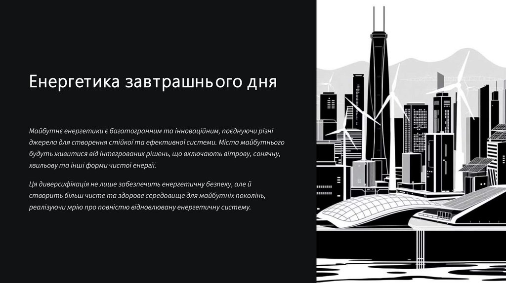 Енергетика завтрашнь ого дняМайбутнє енергетики є багатогранним та інноваційним, поєднуючи різні