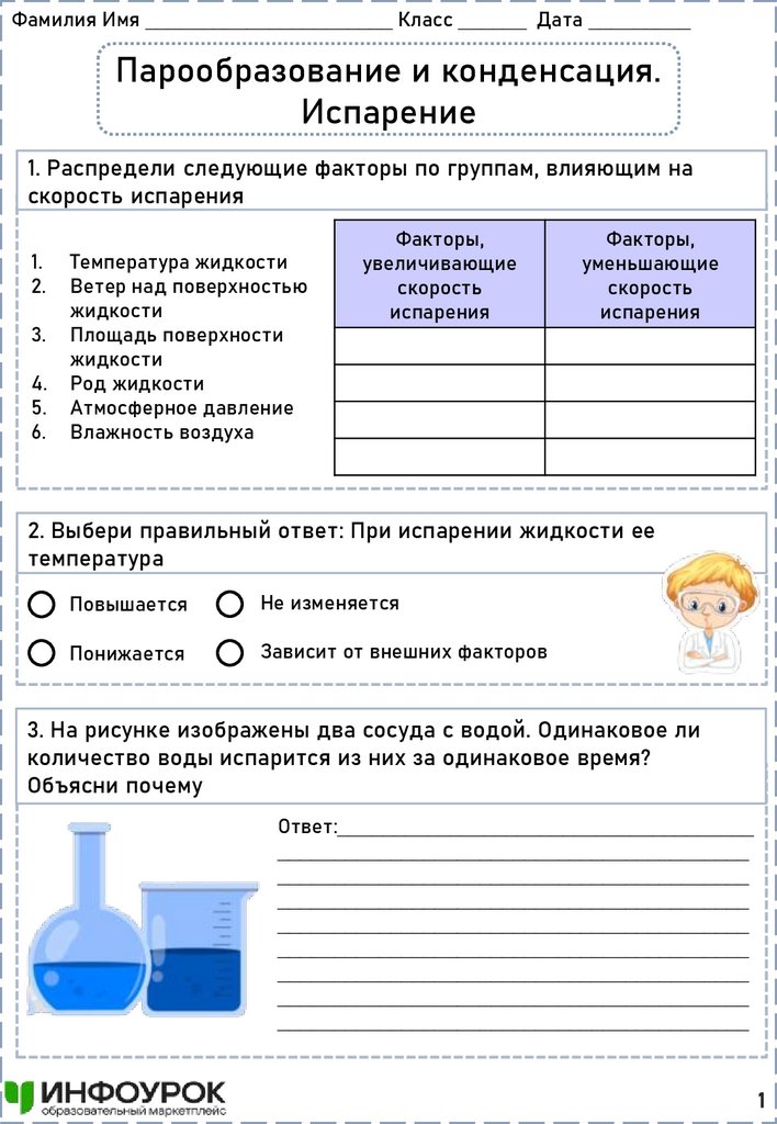 Фамилия Имя ______________________ Класс ______ Дата _________Парообразование и конденсация.