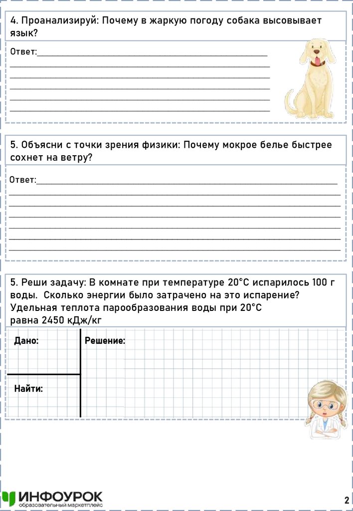 5. Объясни с точки зрения физики: Почему мокрое белье быстрее
