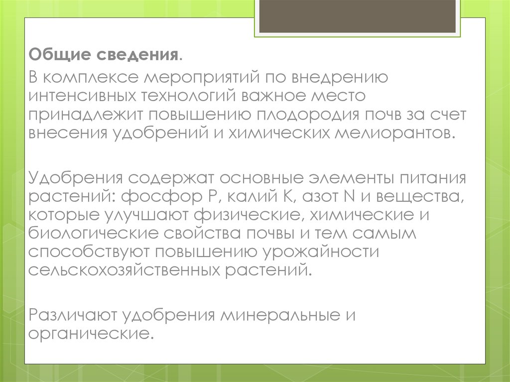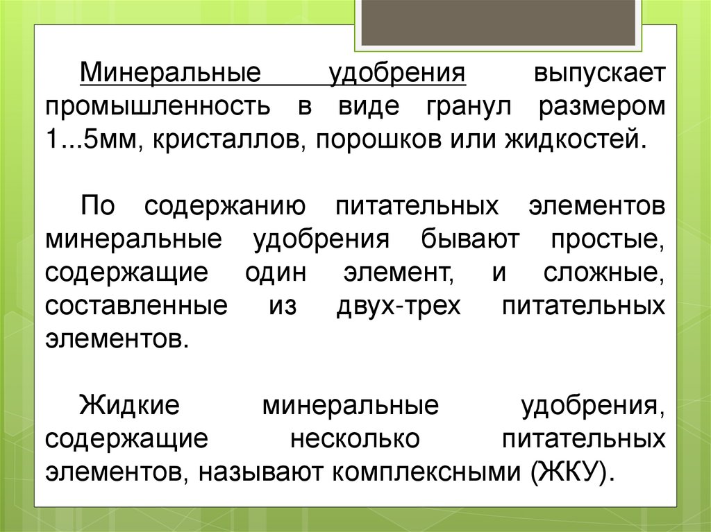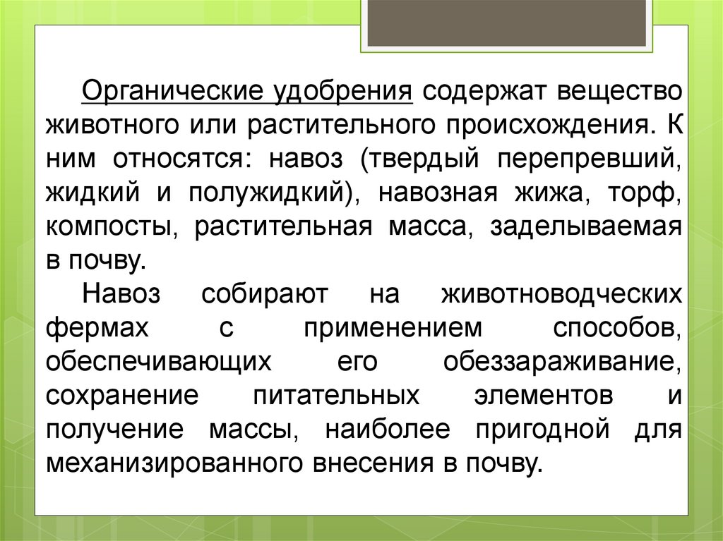 Органические удобрения содержат веществоживотного или растительного происхождения. К