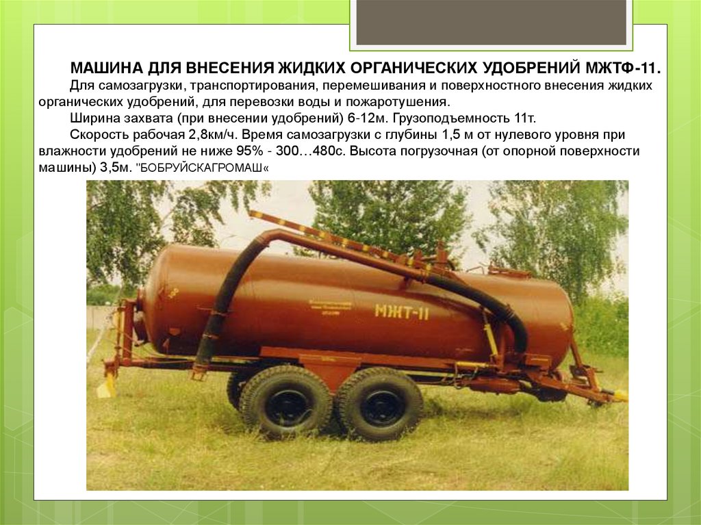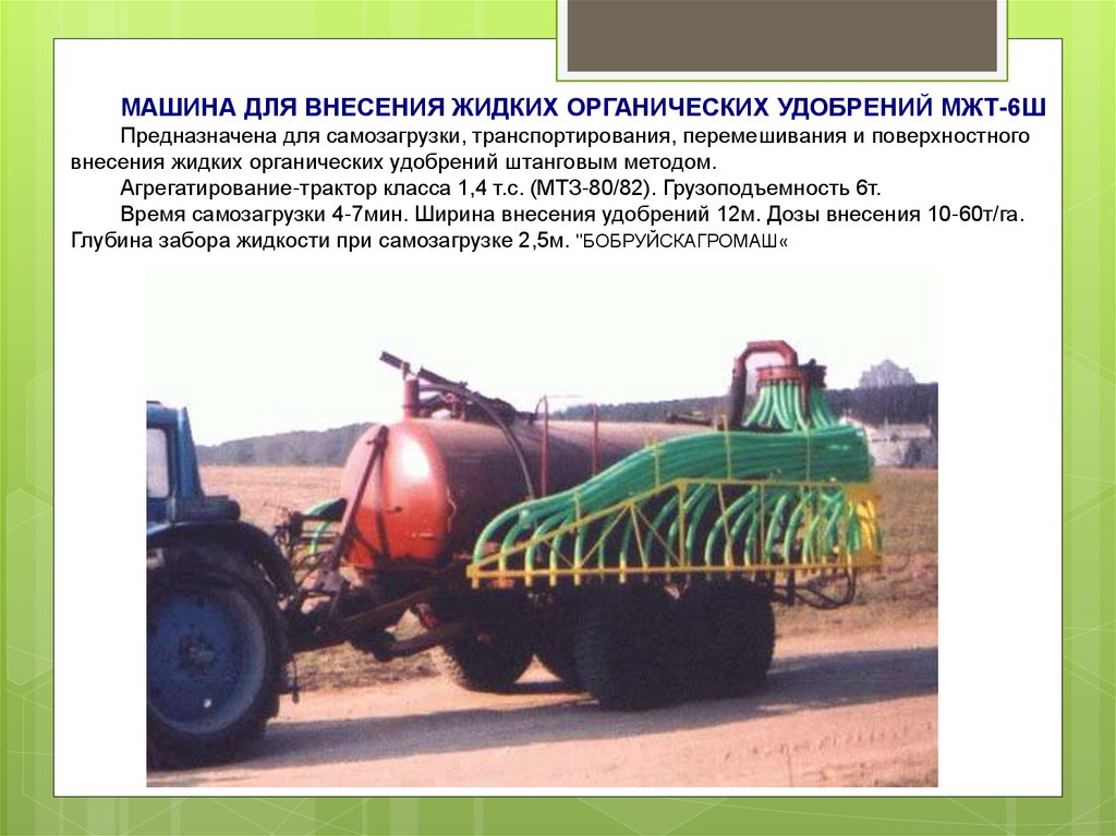 Машина для внесения жидких органических МЖТ-6Шпредназначена для самозагрузки, транспортирования,