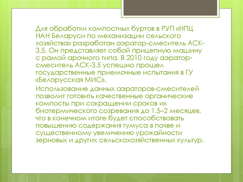 Для обработки компостных буртов в РУП «НПЦНАН Беларуси по механизации сельского